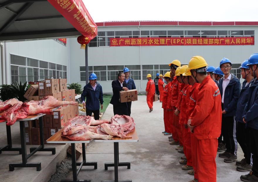 2月3日上午,廣州瀝滘污水處理廠(EPC)項目經理部開展職民工春節慰問活動,為項目部300多名管理及勞務人員送上了公司的關懷和新年祝福?;顒佑晒究偨洕鷰熗跣〔ㄖ鞒?。