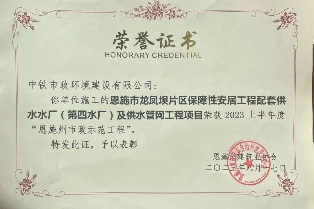 8月17日,公司承建的恩施市龍鳳壩片區(qū)保障性安居工程配套供水水廠(第四水廠)及供水管網(wǎng)工程項目榮獲 2023 上半年度“恩施州市政示范工程”。...