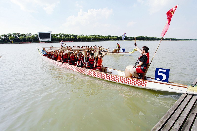 本次龍舟賽為500米直道競(jìng)速,比賽均設(shè)6條航道,30支龍舟隊(duì)通過預(yù)賽競(jìng)速,10支隊(duì)伍分為兩組進(jìn)入決賽的最后角逐。來自建設(shè)交通系統(tǒng)34家單位組成的30支龍舟代表隊(duì)在此一較高下。13點(diǎn)45分,隨著發(fā)令信號(hào)槍響,一條條龍舟沿著500米的賽道向前沖去,似蛟龍出水,如百舸爭(zhēng)流,劈波斬浪、奮勇爭(zhēng)先。經(jīng)過激烈的角逐,代表中鐵上海工程局集團(tuán)參賽的“中鐵上海先鋒號(hào)”龍舟隊(duì)以小組第一的成績(jī)順利進(jìn)入決賽。在接下來的決賽中,集團(tuán)公司龍舟代表隊(duì)奮力拼搏,最終以2秒之差遺憾獲得亞軍,但2分33秒已經(jīng)創(chuàng)造了隊(duì)伍參加龍舟賽以來的歷史最好成績(jī)。