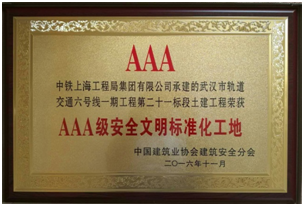 11月30日, 2016年度全國“AAA級安全文明標(biāo)準(zhǔn)化工地”表彰大會在安徽合肥召開,公司承建的武漢軌道交通六號線一期第二十一標(biāo)段土建工程喜獲本年度“AAA級安全文明標(biāo)準(zhǔn)化工地”。武漢市軌道交通六號線一期第二十一標(biāo)段土建工程位于武漢市東西湖區(qū)金山大道,包括環(huán)湖西路站、金銀湖停車場以及出入場線區(qū)間,合同總造價50258萬元。自開工建設(shè)以來,項目部高度重視現(xiàn)場文明施工和標(biāo)準(zhǔn)化管理,施工過程中嚴(yán)格落實行業(yè)各項管理制度和中鐵上海局各項安全管理內(nèi)控制度。項目部以安全生產(chǎn)責(zé)任制為核心,建立健全安全文明施工管理制度及保證體系,狠抓全員安全教育培訓(xùn)和班組長安全質(zhì)量責(zé)任制工作,通過全員安全教育、安全技術(shù)交底、開辦農(nóng)民工夜校、班前安全講話、事故案例學(xué)習(xí)、月度大檢查等多種形式,營造濃厚的安全生產(chǎn)氛圍,提高員工安全質(zhì)量意識和文明施工意識,確保現(xiàn)場安全生產(chǎn)。
