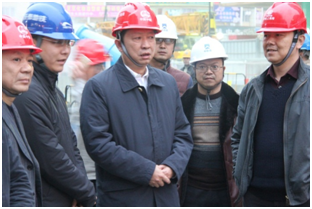 1月6日,成都市副市長劉守成一行到公司承建的成都地鐵3號線二三期工程土建3標東升站觀摩考察除霾設備使用情況。成都地鐵有限責任公司副總經理兼建設分公司總經理張智、中鐵成投3號線二期指揮部指揮長楊建偉、公司黨委副書記宋芊陪同觀摩考察。